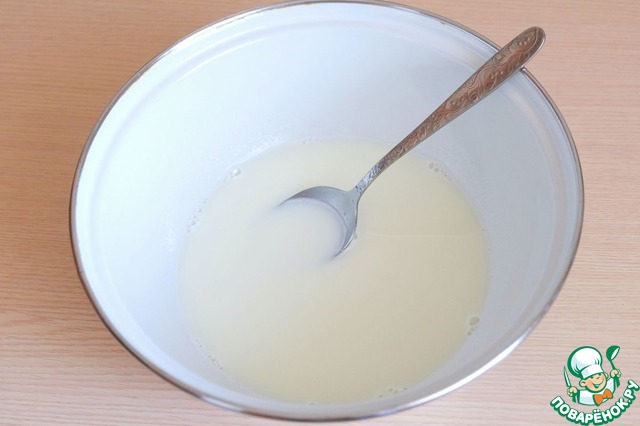Молоко (200 мл.) подогреть. В миску с молоком добавить 1,5 ст. ложки сахара