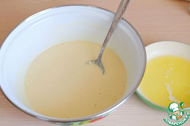Добавить в опару соль (1 ч. ложка), добавить 2 яичных желтка, добавить 1 ст. ложку растительного масла. Сливочное масло (30 гр.) расплавить, остудить, добавить в опару