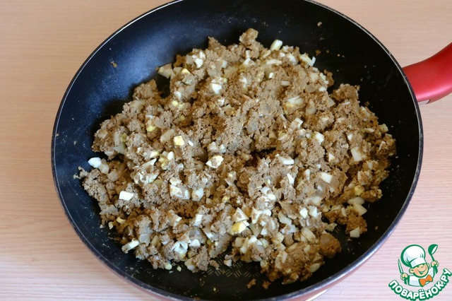 Добавить яичную крошку в начинку из печени