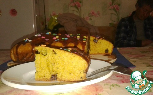 Но несмотря на это, пирог очень вкусный, нежный, воздушный. В нем идеально сплелись ароматы ванили и апельсина, а шоколад гармонично все это дополняет.