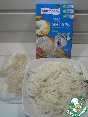 Рис в пакетиках ТМ "Мистраль" отварить в кипящей подсоленной воде, согласно инструкции на упаковке. Рис "Янтарь" варится 35 минут.