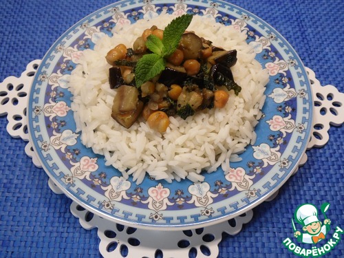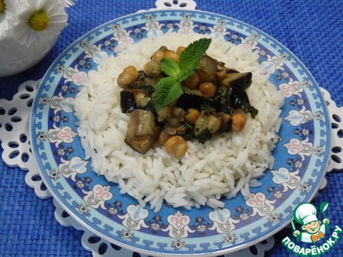 Баклажаны с мятой - достаточно распространенное кулинарное сочетание. Я добавила к ним нут и рис ТМ "Мистраль" в качестве гарнира и получила вкусный и сытный ужин.