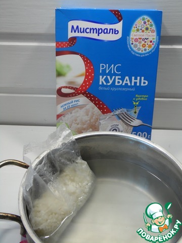 • Рис в пакетиках ТМ "Мистраль" отварить в кипящей подсоленной воде до готовности.