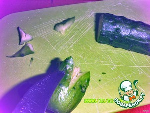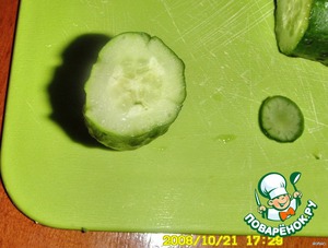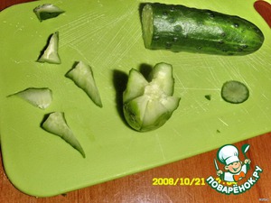 От огурца отрезаем кусочек~8 cм и делаем 5 насечек,
