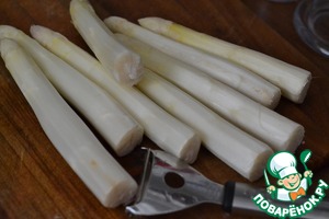 Отварить спаржу в кипящей, подсоленной воде 5 минут.