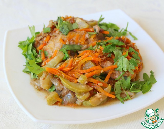 Сочное мясо с кабачками, луком, морковкой и грецким орехом, оторваться трудно! Пробуем?