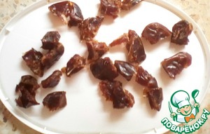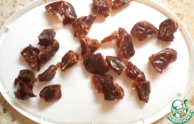 Следующий ингредиент - порезанные финики. Их также обжариваем 2 минуты.