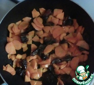 Разогреваем в сковороде растительное масло, добавляем морковь и обжариваем на сильном огне 2 минуты.