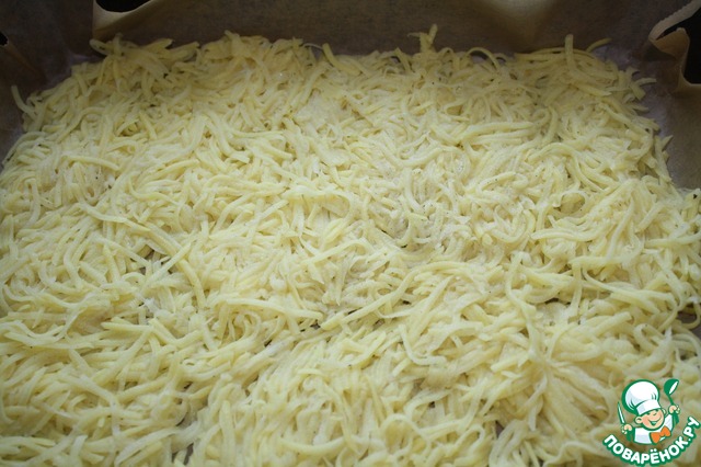 Равномерно размазать сверху, поставить в предварительно разогретую духовку и запекать 1 час при 200*С -