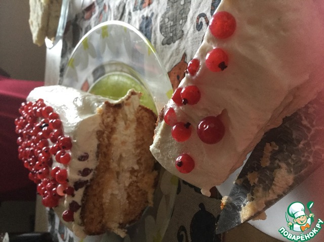 И последнее волшебство: обязательно поместите это диво-дивное в холодильник минимум на 5 часов - для пропитки. У меня он простоял сутки в ожидании самых главных ценителей волшебства - двух внучек. Я потом много раз отмывал щеки от кремовых поцелуйчиков!
