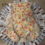 Так как я ещё начинающий волшебник, у меня не нашлось подходящей волшебной посуды и пришлось довольствоваться вот таким волшебным силиконом диаметром 28 см. Диаметр большой, корж получился низкий, но на вкус не повлияло.