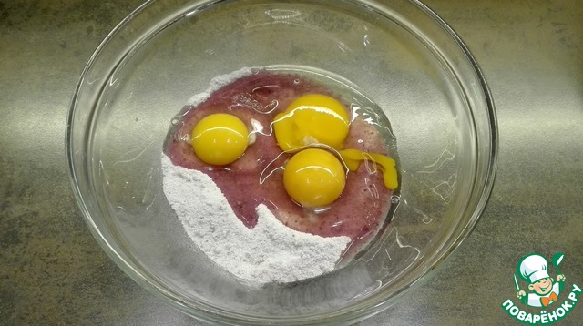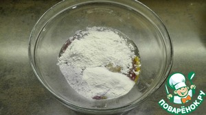 Добавляем два волшебных порошка - муку, разрыхлитель - и хорошо перемешиваем