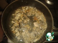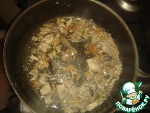 Обжарить мелко нарезанные грибы на сливочном масле, на сильном огне, периодически встряхивая сковороду и не давая им зажарится до золотистой корочки.