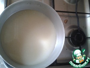 После добавляем в сок нашу смесь муки и масла, быстро перемешиваем и вливаем 100 мл. сливок.