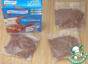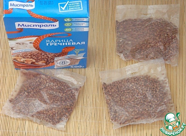- Крупа гречневая (торговой марки Мистраль) — 1/3 пакет.