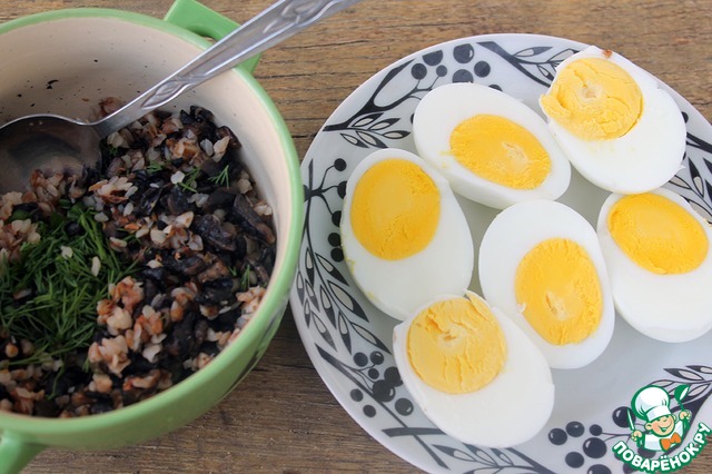 Рецепт «Яйца, фаршированные гречкой и грибами»: