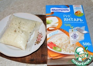 В кипящую подсоленную воду кладем пакетик с рисом и варим 30 минут. Затем вынимаем пакетик из кастрюли и даем немного стечь.