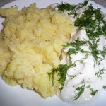 Мелко нарезаем молодой зеленый чеснок, петрушку, заливаем их сливками, добавляем сухую аджику, солим и все перемешиваем.