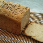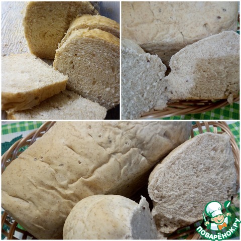 Буханочка практически не крошится. Ещё этот хлеб может быть с обычным сухим мякишем, а если сделать тесто консистенции жидкой сметаны, то в итоге получается мякиш глянцевый, влажный (на сыр похож), но при этом не сырой, за что я его и полюбила.