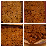 Противень застилаем бумагой для выпечки, и слегка её смазываем. На бумагу выкладываем массу слоем примерно 1.5 см и подравниваем края. Для удобства я поместила бумагу в прямоугольную форму. Духовку разогреваем до 180 градусов и выпекаем 20 минут. Достаём и сразу, в горячем виде, нарезаем на порционные кусочки. Они будут снаружи суховатыми, а внутри мягкими!