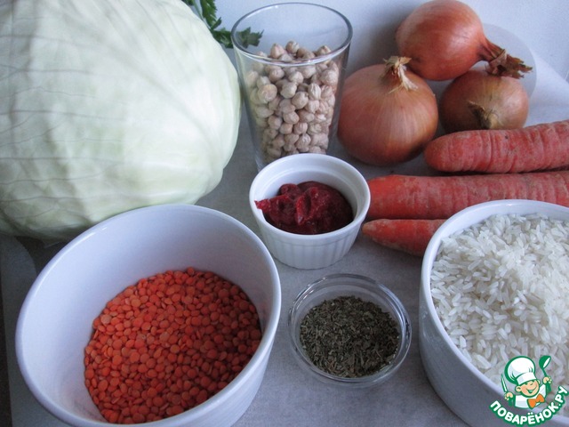 Ингредиенты для «Постные голубцы с овощами и нутом»: