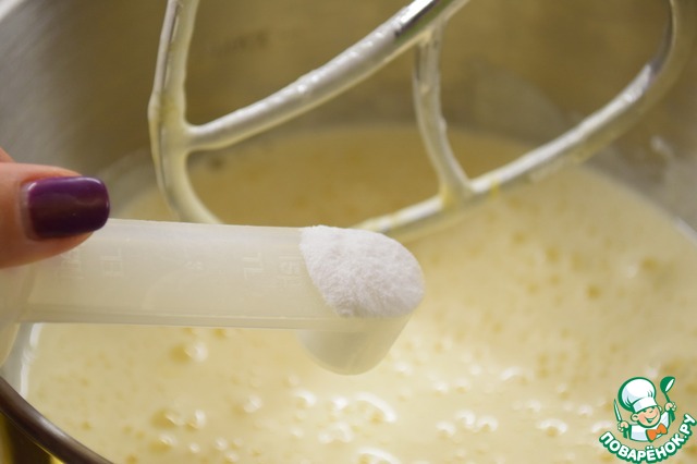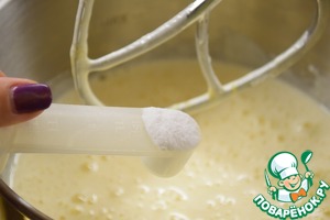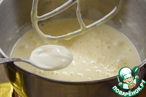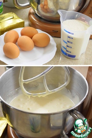 В чаше миксера взбить яйца с сахаром до белой, пышной массы.
