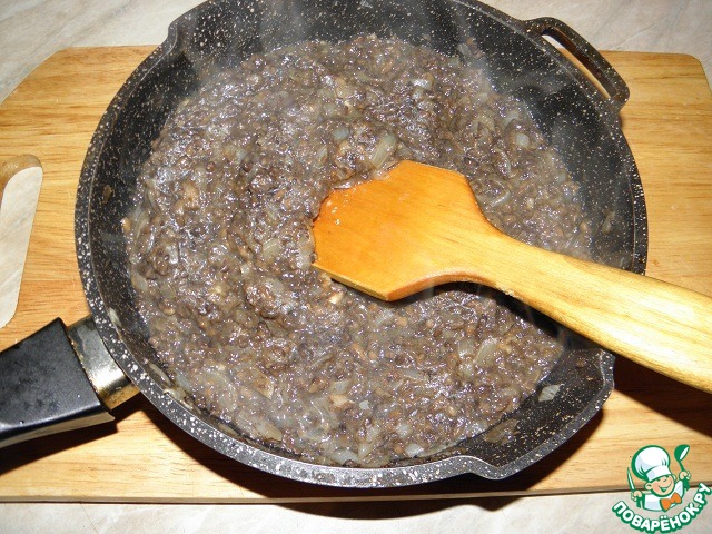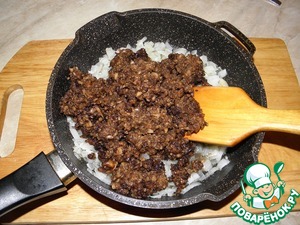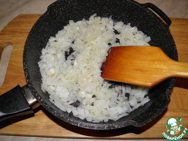 Лук мелко нарезать, припустить в разогретом сливочном масле (вы так же можете лук прокрутить вместе с грибами, но мне такой вариант больше нравится)