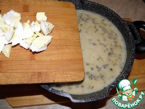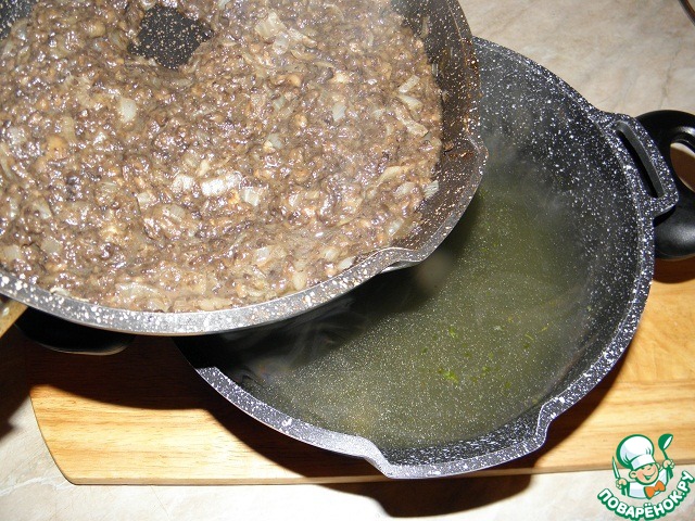 Выложить грибы в готовый бульон, проварить минуты 3 (специи не забываем!)