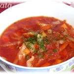 А у нас сегодня борщ. А у вас? Да-да, самый обыкновенный борщ, из стандартного набора продуктов, но что-то в нем необыкновенного есть. Перепробовала много рецептов борщей, но всегда возвращаюсь к этому. Рецепт от Аллы Захаровой из "Крестьянки " 1998 г. Конечно, набор продуктов меняется, что есть под рукой, добавляю и паприку, и сельдерей, стручковую фасоль, помидоры, баклажаны... Неизменно одно: размятая картошка, лимонный сок и сахар.