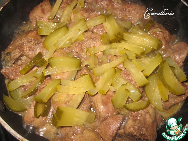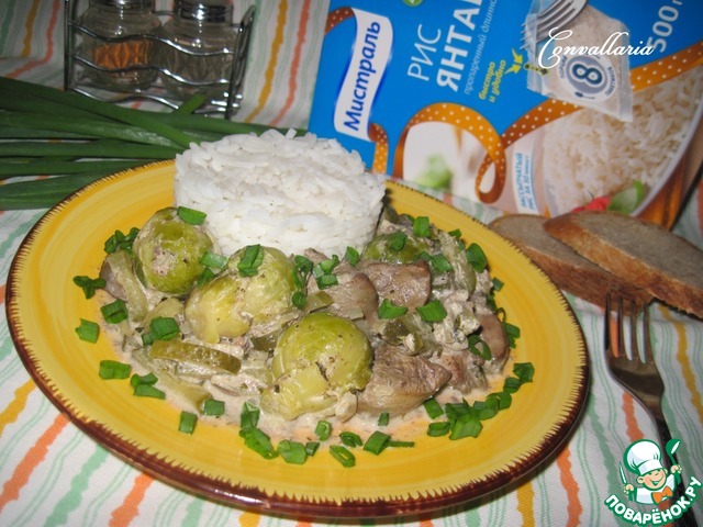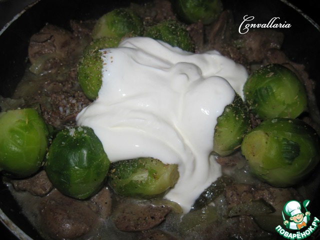 Рецепт «Печень с огурцами и брюссельской капустой»: