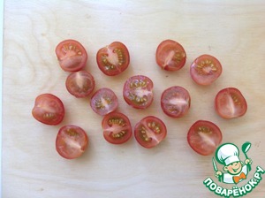• Помидоры помыть и нарезать дольками. Если используются черри - разрезать пополам.