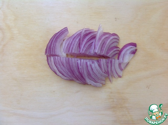 Очистить лук и нарезать полукольцами.