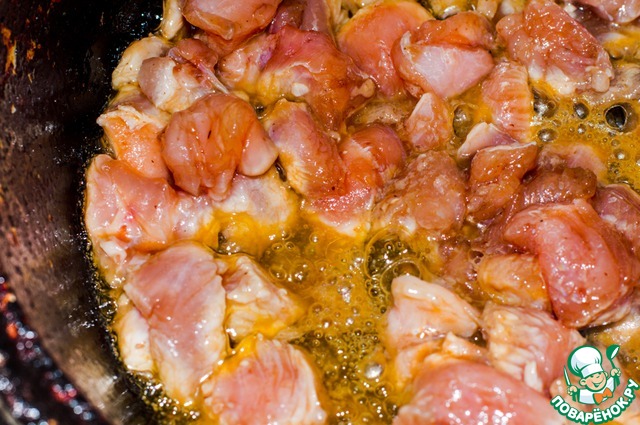 У кого нет времени и желания заморачиваться, оставляйте все как есть.. Мясо в таком случае приобретет более насыщенный цвет и почему то быстрее обжаривается, поэтому добавляю водички чтобы не пригорело. Да, и смотрите по вкусу-вместо 3 ст. л. варенья можно добавить 2 ст. л. Все таки оно придает блюду сладость. Кто не любит, уменьшайте дозировку.
