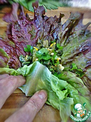 И заворачиваем, как кулек, вначале надломив "хвостик" салата. -