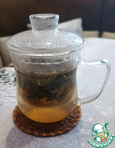 Для начала заварник ополосните кипятком и закройте крышкой, пока подготавливаете ингредиенты. В заварник кладем чай и мяту. Вкусно как с черным, так и с зеленым чаем.