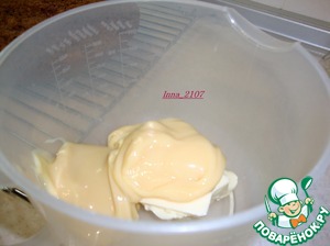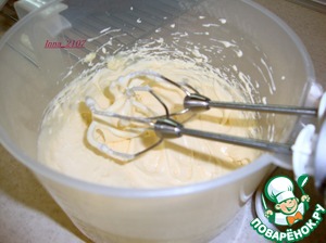 Приготовить крем. В размягченное сливочное масло добавить сгущенное молоко.