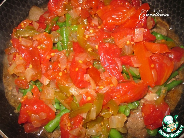 Печень с лечо и стручковой фасолью