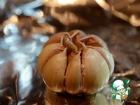 Духовку заранее разогреть до 190 градусов. Чеснок очистить от внешней шелухи, положить в фольгу, чуть посолить, сбрызнуть оливковым маслом. |