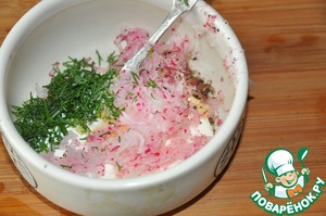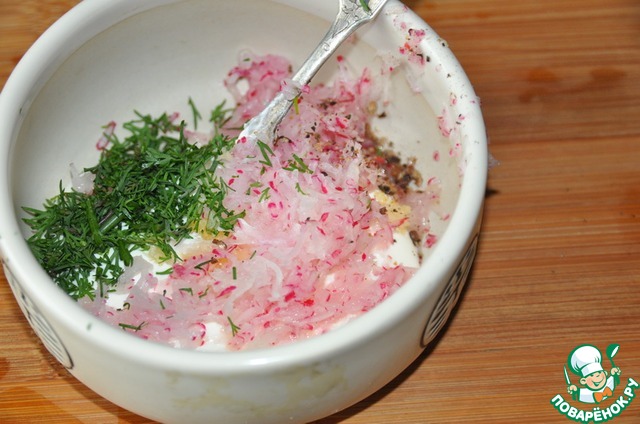 Рецепт "Фишбургер с дипом из редиса":