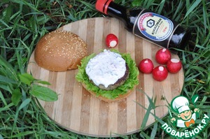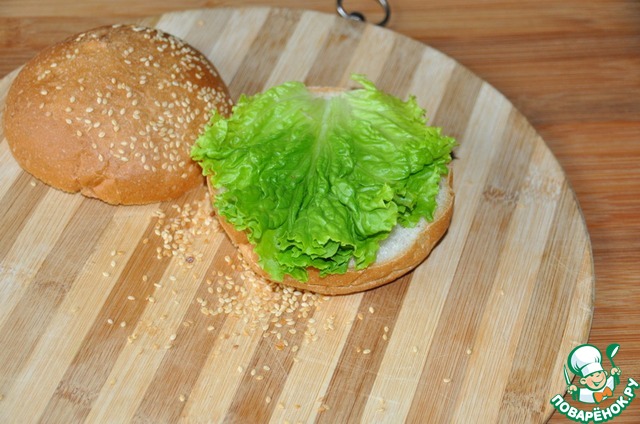 Поливаем щедро котлету соусом, закрываем второй половинкой булочки. Приятного аппетита! |