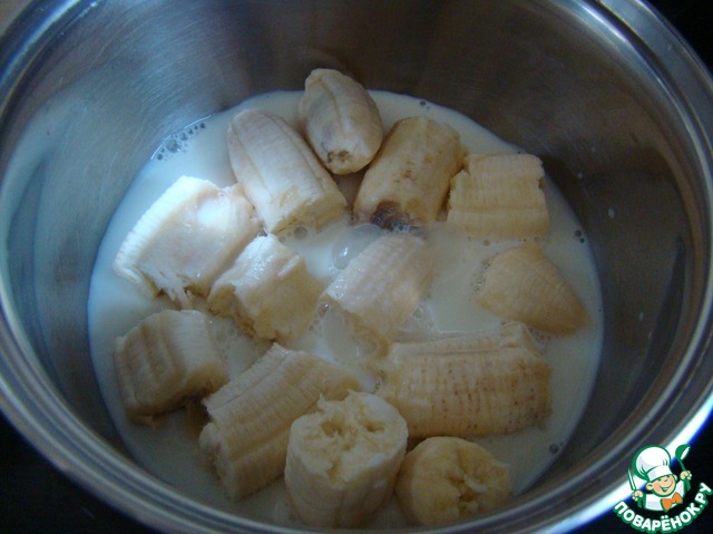 Бананы поломать в кастрюльку, влить молоко или сливки.