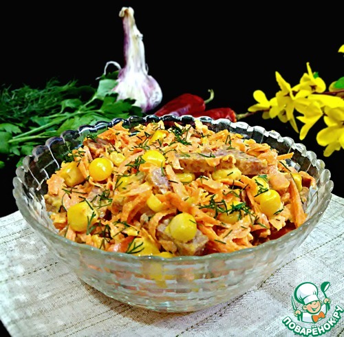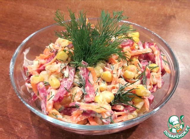 Попробуйте вкусный салат с копченой колбасой, кукурузой и пикантной заправкой. Готовится быстро и просто, получается вкусно и сытно. Заходите, угощайтесь.