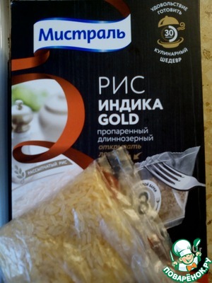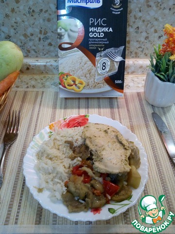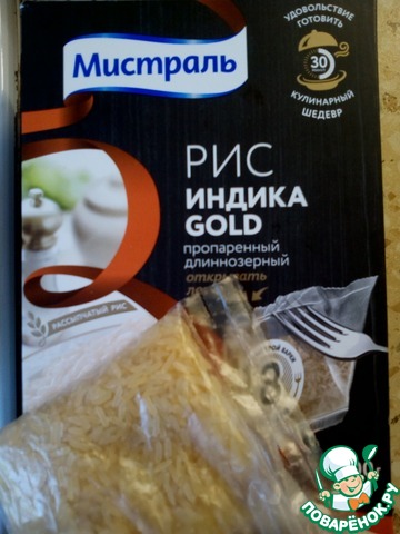 В качестве гарнира к этому блюду я выбрала рассыпчатый пропаренный рис Индика Голд ТМ "Мистраль". Он всегда получается рассыпчатым и сохраняет свой аромат даже после повторного разогревания.