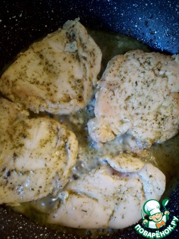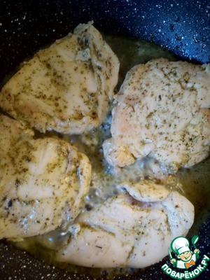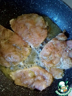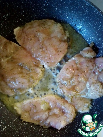 Теперь обжарим филе куриной грудки по 2 - 3 минуты с каждой стороны. Время зависит от толщины куска.
