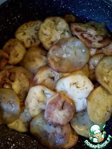 Обжарим в масле южный баклажан,