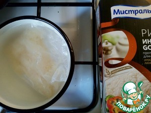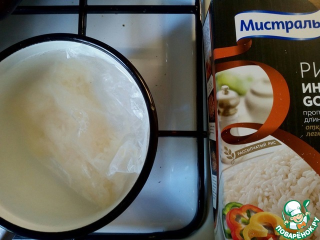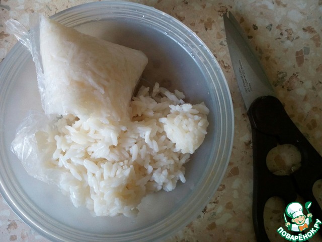 Отварим мы в пакете белый рис.