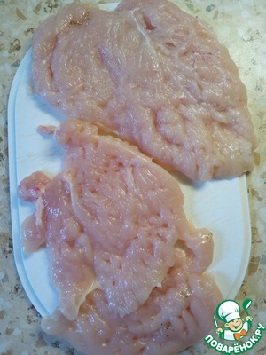 - Филе куриное (половинка куриной грудки без кожи и костей; у меня порции небольшие) — 1 шт