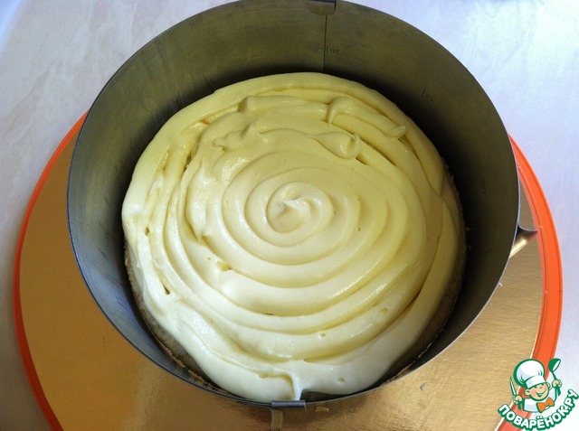 Делаем бортик из крема вокруг компоте и само компоте также покрываем тонким слоем крема.