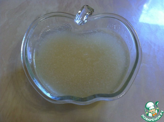 Готовим компоте. Желатин (20 гр) замочить 120 мл холодной воды.