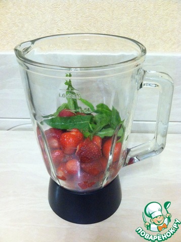 Клубнику (400 гр) с несколькими листочками мяты измельчить в блендере до состояния пюре. Остальные 150 гр клубники порезать на небольшие кубики.